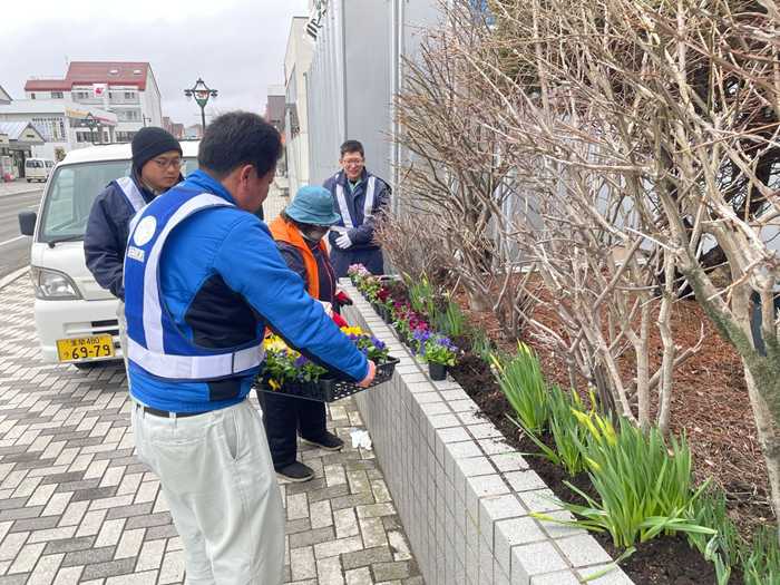 室蘭開発建設部発注「一般国道236号 浦河町 浦河道路維持除雪外一連工事」と「一般国道236号 浦河町 上杵臼法面外一連工事」の地域貢献として浦河町の花植え活動に参加した。