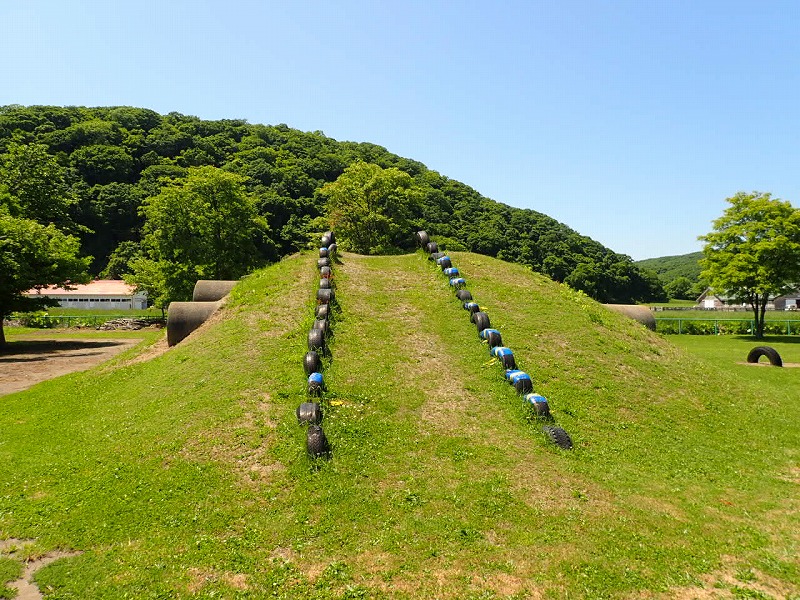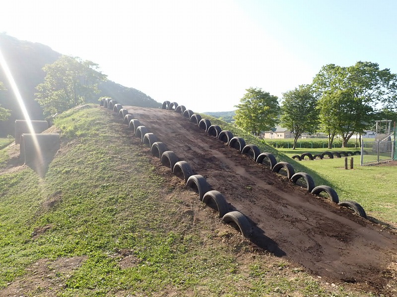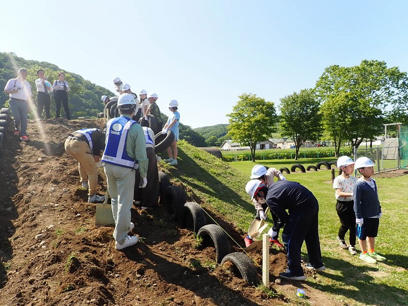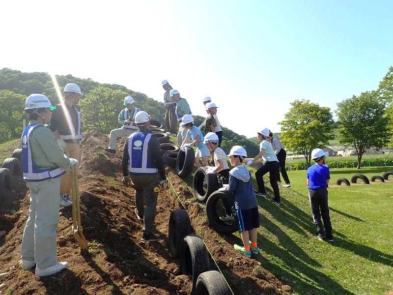 浦河東部小学校のグラウンド隅にある小山のタイヤを取り換えるボランティア活動を行った。